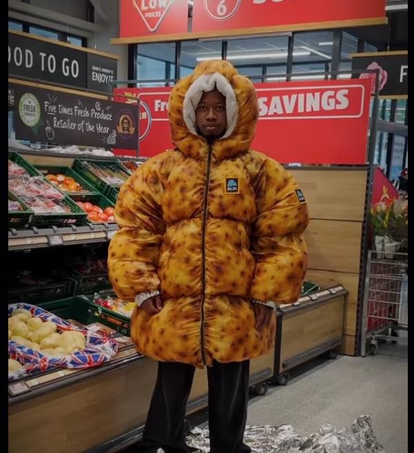 Popularni lanacsupermarketa Aldi udružio se s londonskim modnim brendom Agro Studio kako bi stvorio nesvakidašnji odevni predmet – puf koja izgleda kao ogromni pečeni krompir. Ovaj jedinstveni komad odeće, opisan kao „šik udobna hrana“, lansiran je na britanskom tržištu povodom početka sezone pečenih krompira.