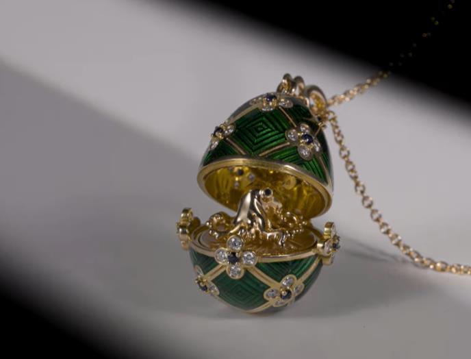 Ručno izrađeni limitiran je na samo 50 numerisanih primeraka širom sveta i visok je 8,4 cm, napravljen od 18-karatnog žutog zlata i premazan bogatim zelenim emajlom, pažljivo odabranim da podseća na onaj korišćen na Faberžeovom jajetu prikazanom u filmu.