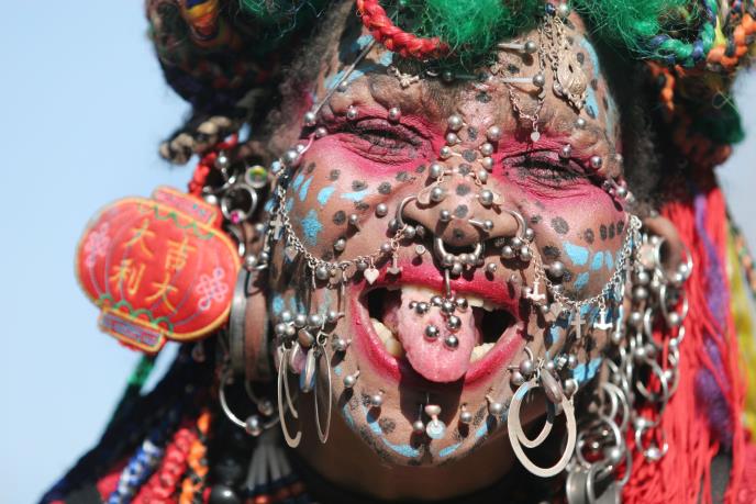 Elejn ima pirsinge na gotovo svim delovima tela, uključujući i više od njih 500 u genitalnom području. Ukupna težina njenih pirsinga procenjuje se na oko tri kilograma.