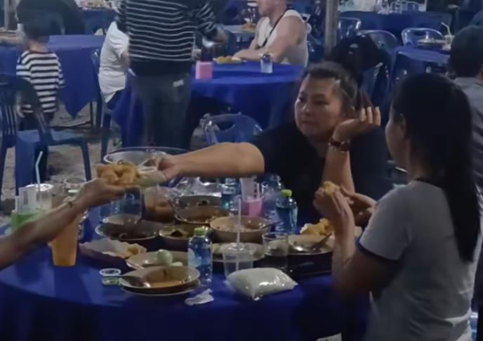 Objasnio im je da su stigli s obližnje noćne pijace, a da ih je privukao miris hrane koja se pripremala za prisutne. Snimak prikazuje kako par sedi za stolom, očito misleći da su u ugostiteljskom objektu i čekajući posluživanje.