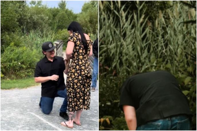 Isprva, sve je izgledalo idilično - priroda, devojka koju voli, prsten... a samo trenutak kasnije, romantični trenutak pretvorio su pravu katastrofu.