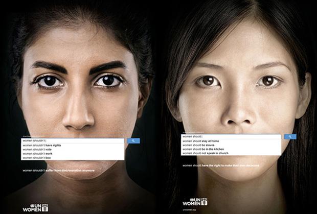 Nova kampanja koristi popularne reči u internet pretraživačima da bi dočarala kako svet zaista gleda na žene. U kampanji za UN Women na fotografskim portretima prikazani su krupni planovi lica žena, kojima je preko usta zalepljen isečak sa internet pretraživača.