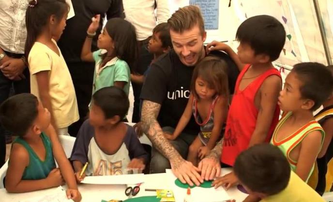 Na Filipinima je snimio promotivni video kao Unicefov ambasador dobre volje. Fotografijama na kojima drži bebu već je uspeo da razneži ceo svet, a sada je prikazano i kako se Bekam igra sa decom, kao i deo u kome govori o milionima dece koja su ugrožena.