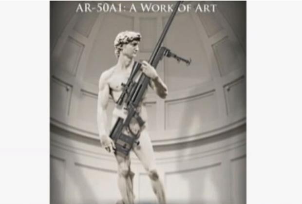 Kompanija Armalajt, mala firma iz Ilionoja, koristi fotografiju Davida - skulpture koju je Mikelanđelo iskelsao iz jednog bloka mermera 1504. godine - u svojoj reklami za AR50A1 pušku