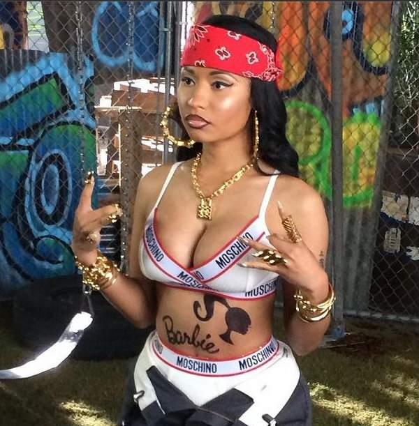 Na jednoj od fotografija sa snimanja koje je reperka postavila na svoj Instagram profil pokazuje i kako su joj iscrtavali reč "Barbi" preko stomaka