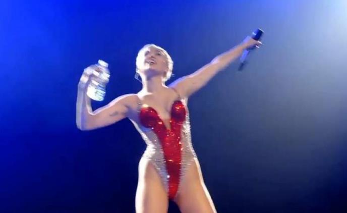 Tokom nastupa Majli je uzela gutljaj vode iz flaše, te je počela da je pljuje na svoje obožavaoce