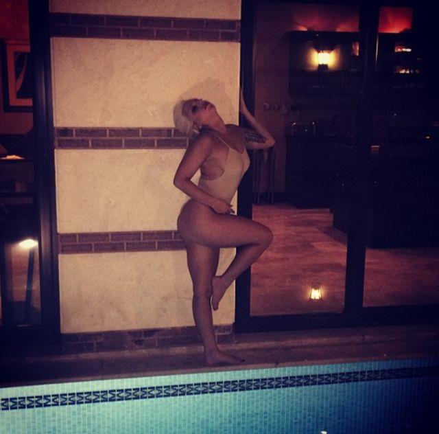 Ledi Gaga je sa svojim obožavaocima na Instagramu podelila dve fotografije sa noćnog plivanja u bazenu. Da ovim fotografijama provocira poslednje kritike o njenoj kilaži potvrdila je komentarom koji je napisala kraj druge fotografije.
