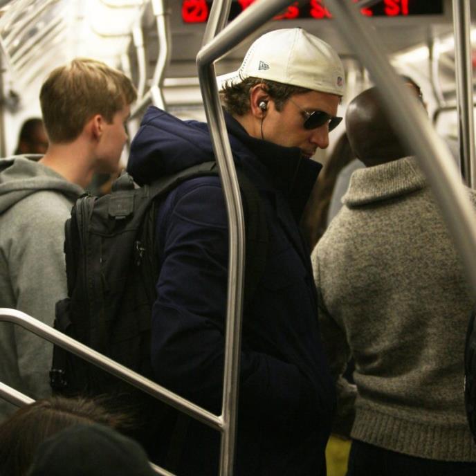 Bredli Kuper, koji je 2011, godine proglašen za najseksepilnijeg muškarca, uslikan u metrou u Njujorku, gde se, sa slušalicama u ušima, maskiran naočarima i kačketom, mirno se vozi podzemnom železnicom.