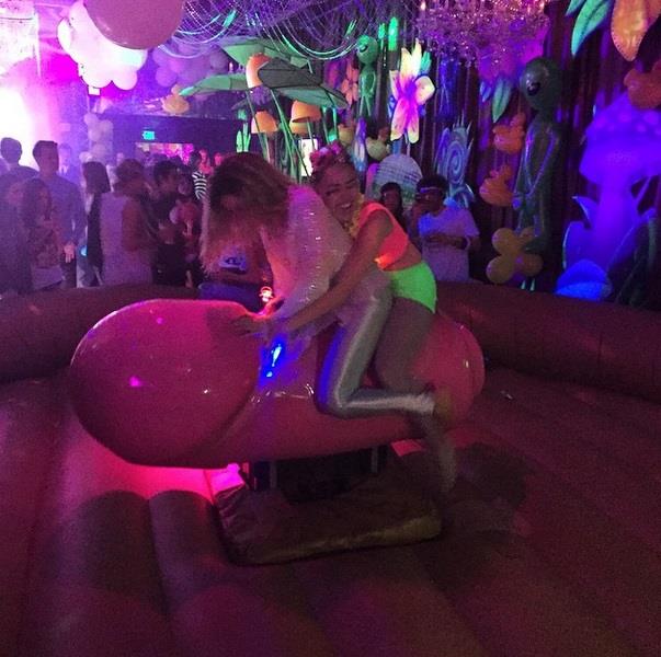 Prostorija je bila ukrašena seksi igračkama i listovima marihuane, a glavna atrakcija bila je jahanje mehaničkog bika u obliku penisa