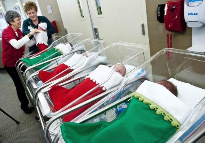 Tako je porodilište na Univerzitetu Pitsburgu nabavilo posebne božićne čarapice u koje su stavili novorođenčad koja su na svet stigla 25. decembra.