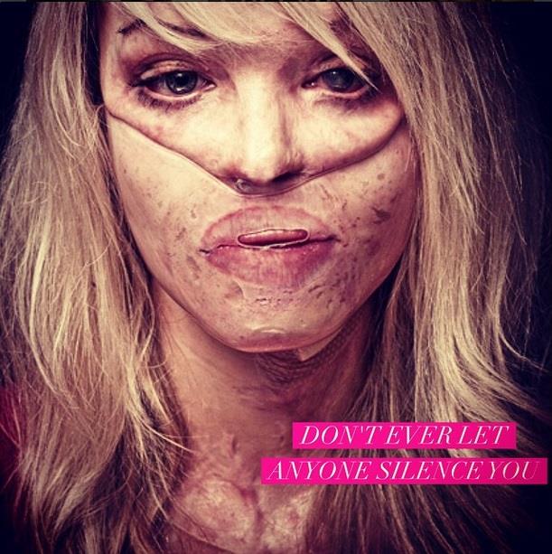 "Kada se pogledam u ogledalo, ožiljci me više ne uznemiravaju. Samo su podsetnik da sam jača osoba od one koja je htela da me povredi. Svi mi imamo ožiljke, neki su na koži, a neki na duši. Zapamtite - oni koji opstaju nose ožiljke. Sledeći put kada se pogledate u ogledalo podsetite sebe - ponosan sam što sam živ".