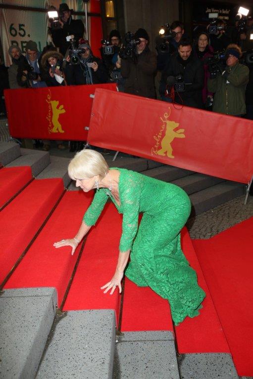 Helen Miren (69) došla je na premijeru filma „Woman in Gold“, na Berlinskom Internacionalnom Filmskom Festivalu gde se „incident“ i dogodio.Srećom pa se u blizini našao i jedan gospodin koji joj je brzo pomogao da ustane, ali naravno ona je u svemu tome videla i smešnu stranu.