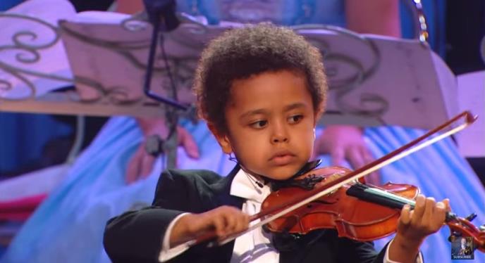 Na prvom videu vidimo Akima Kamara, kada je imao 5 godina i svira Mendelsonov "Ples vilenjaka" sa violinistom Andreom Riuom i orkestrom Johana Štrausa. Akim je iz Berlina i svira violinu od svoje druge godine, pre nego što je počeo da priča i dok je još uvek, bukvalno bio u pelenama.