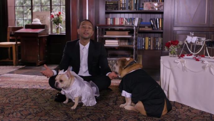 Mnogi parovi bi poželeli da im Džon Ledžend peva na venčanju, ali ovoga puta se ta želja ostvarila paru buldoga.