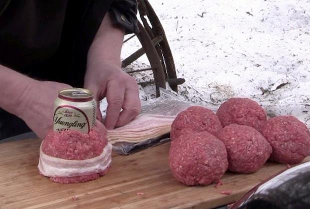 Sve što vam je potrebno jeste limenka piva, mleveno meso, slanina i roštilj.