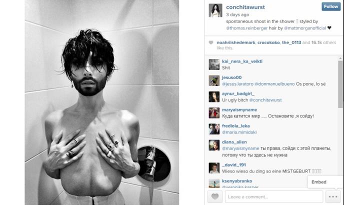 Prošlogodišnja pobednica Evrosonga, Končita Vurst, objavila je novu fotografiju na svom Instagram profilu koja je zapalila internet.