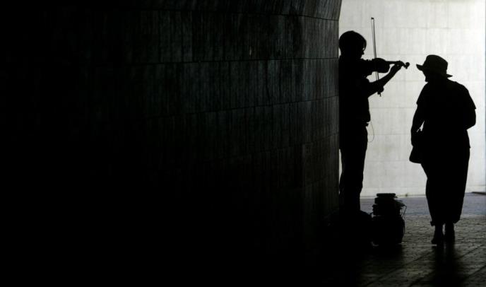 Violinista prima svoj prvi dolar: žena baca novčić u šešir, i bez zastajkivanja, nastavlja hod.
