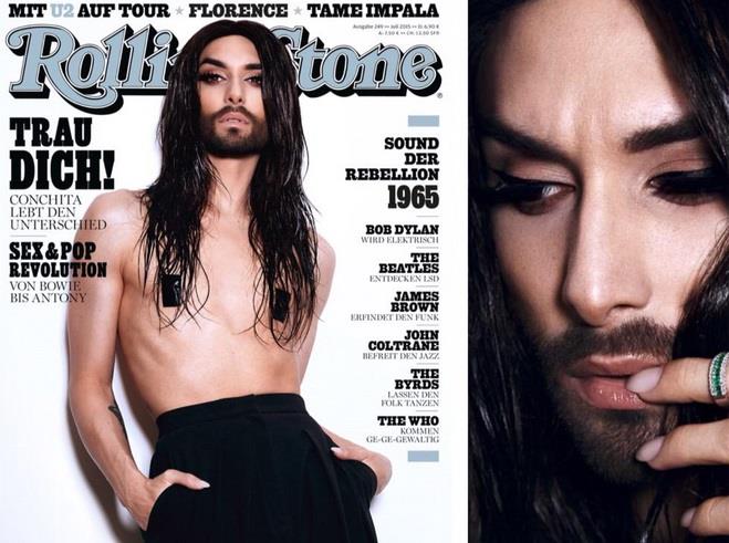 Končita Vurst, prošlogodišnja pobednica Pesme za Evroviziju, slikala se u toplesu na naslovnici Rolling Stone magazina za avgust.