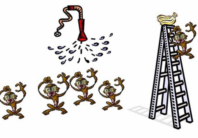 Da postoji mogućnost da se postavi pitanje majmunima zašto su tukli sve one koji su pokušali da se popnu uz merdevine, sigurno bi njihov odgovor bio: “Ne znam. Tako ovde stvari funkcionišu”.
