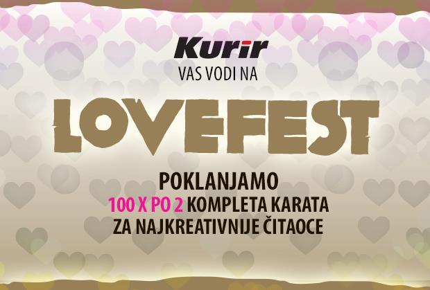I ove godine kao i prethodne Kurir.rs vas vodi na Lovefest. Sto posetilaca sajta Kurira dobice po 2 kompleta ulaznica za festival LOVEFEST u Vrnjačkoj Banji.
