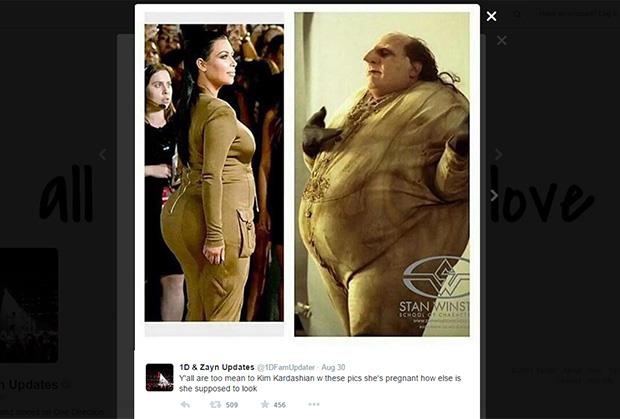 Pored komentara, društvene mreže su preplavile i fotografije koje su zasmejale čitavu Internet zajednicu. Tako su Kim uporedili sa Pigvinom, likom iz filma "Povratak Betmena" čiji izgled nije ni malo privlačan (najblaže rečeno), ali i sa Džabom Hatom iz "Zvezdanih ratova", kao i sa mnogim drugim likovima i životinjama, pa i predmetima (poput velikog ranca).