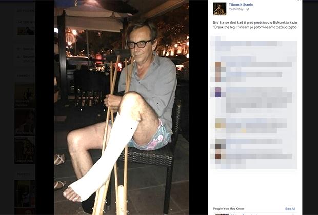 Glumac i producent Tihomir Stanić povredio je nogu na nedavnom gostovanju u Rumuniji