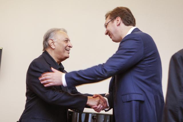 BEOGRAD - Premijer Srbije Aleksandar Vučić prisustvovao je danas probi Beogradske filharmonije pod rukovodstvomn Zubina Mehte uoči gala koncerta i najavio izgradnju velike koncertne dvorane u Beogradu.