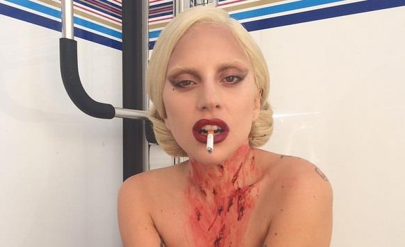 Pevačica Lejdi Gaga je na svom Instagram profilu objavila provokativnu i pomalo jezivu fotografiju. Ona je pozirala s cigaretom u ustima, u mrežastim čarapama, sve u toplesu, dok je cela umazana krvlju.
