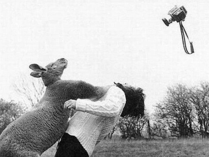 Kada se kengut tuče, on svog neprijatelja zgrabi prednjim nogama tako da zadnje može da iskoristi da šutne i udari. Ova žena je na bolan način saznala koliko su kenguri zapravo opasni, a nejna kamera je odletela u vazduh.