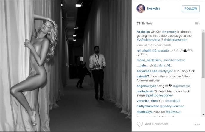 Švedska lepotica Elsa Hosk se odlično zabavljala u bekstejdžu šetajući gola, a fotoreporteri su to oberučke prihvatili.