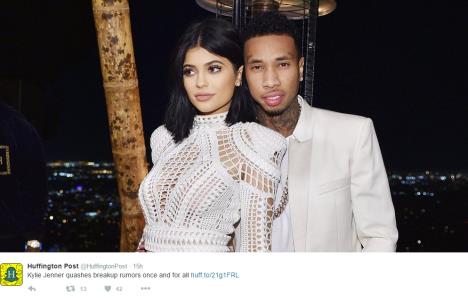 "Ne, nismo raskinuli. Mi smo postali najbolji prijatelji pre nego što se išta dogodilo i to je sjajno. Ne znam, jednostavno se puno družimo", rekla je Dženerova. Voditeljka ju je zamolila da joj pojasni njihov odnos, a tada je Kajli istakla da je u srećnoj vezi sa Tajgom.