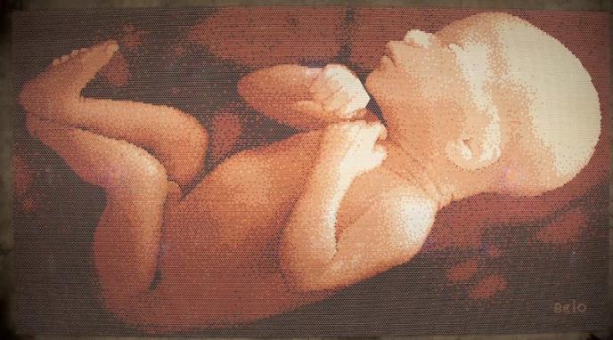 Mozaik je napravljen na površini od 330 metara kvadratnih i predstavlja fetus u materici. Kako ističe umetnik, time ukazuje na neophodnost vode, čak i pre rođenja.
