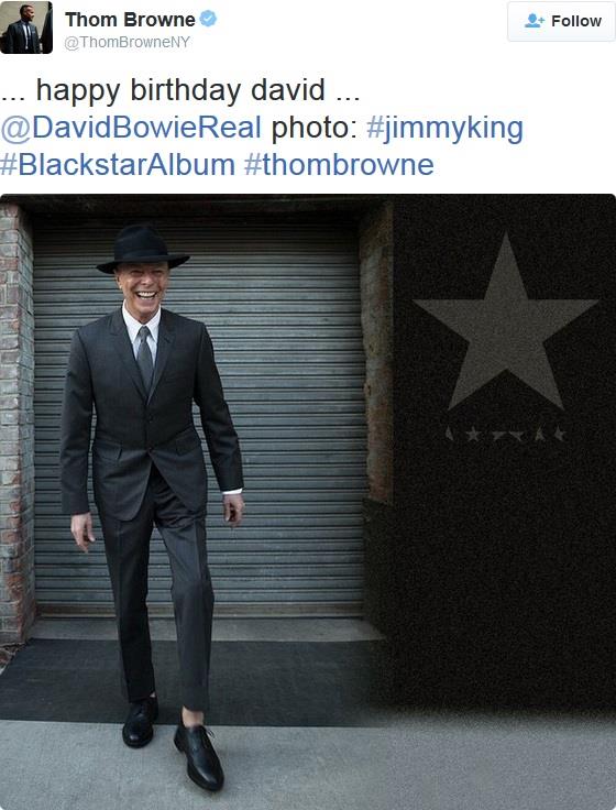 NaslovnaZabavaPop kultura(FOTO) DELOVAO JE VEOMA SREĆNO: Ovo je poslednja fotografija Dejvida BouvijaNa rođendan(FOTO) DELOVAO JE VEOMA SREĆNO: Ovo je poslednja fotografija Dejvida BouvijaUto, 12.01.2016. 14:27h → Sub, 01.07.2017. 0:00hKomentarišiFoto: Twitter/screenshot Fotograf Džimi King uslikao je preminulog velikana Dejvida Roberta Džonsa, nasmejanog u odelu njujorškog dizajnera Tom Brauna. (Mirror)