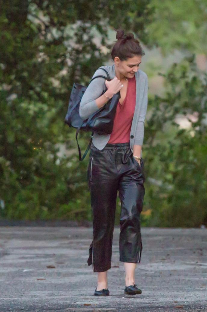 Glumica Kejt Holms (37) došla je po svoju ćerku Suri (9) na čas plesa bez grudnjaka. Naizgled se "smrzavala", a i izgledala je dvostruko mršavije nego inače.