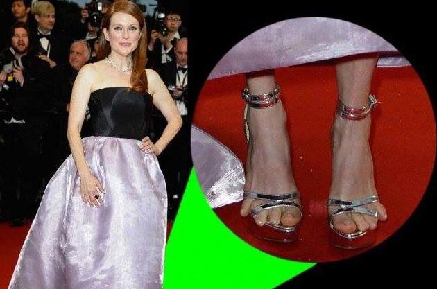 Otvorene sandale u prvi plan izbace razbacane prste Džulijen Mur.