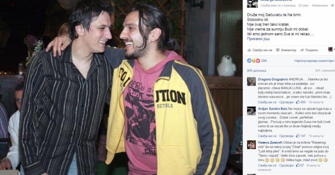 ANDRIJA SE POTRESNIM STIHOVIMA OPROSTIO OD MARINKA: Sačuvaću te. Ne brini. Slobodno idi