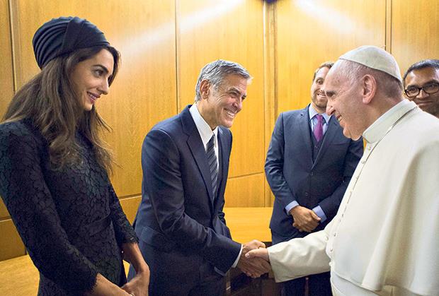 Najintrigantniji holivudski par trenutno Džordž i Amal Kluni ne blista samo na crvenom tepihu u Los Anđelesu već svoj uticaj širi i u drugim centrima moći! U središtu Vatikana popularnom oskarovcu papa Franja uručio je medalju mira, a posebno je bio oduševljen gospođom Kluni, koja je zasenila sve u crnoj čipkanoj haljini brenda „versaće“.