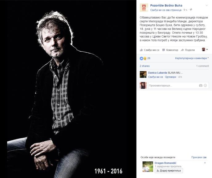 Neka ti je večna slava. Pamtiću te, i to nisu samo reči.Mando, hvala ti. Na svemu."