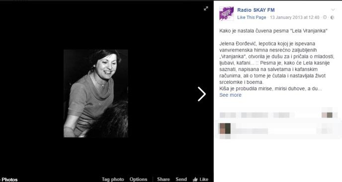 "Svašta su ljudi pričali, ali prava istina je da sam ja tog čoveka videla svega dva puta u životu, nije bilo nikakve ljubavne veze i emocija. Bio je to sasvim slučajan susret. Jedino što je bilo neobično je to da je Dragan par puta napuštao društvo i odlazio ispred Kičera. Kasnije sam saznala da je upravo te večeri nastajala ta pesma", pričala je Lela u jednom od brojnih intervjua.
