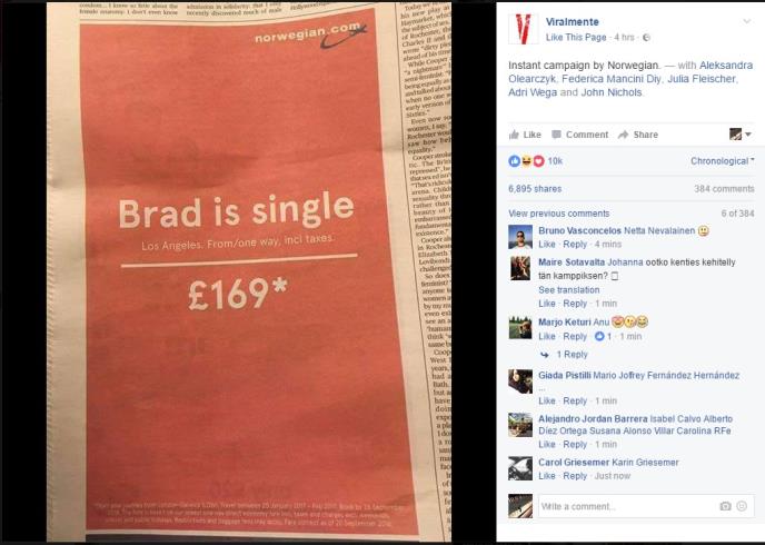 Naime, norveška avio kompanija Norwegian oglasila se u jednim novinama i zahvaljujući originalnosti reklame postala viralni hit.