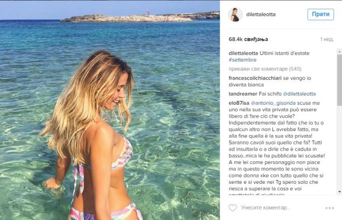Njene eksplicitne fotografije su brzo završile u novinskim redakcijama, a zanosna Dilete Leoti se još uvek nije oglašavala povodom ove situacije.