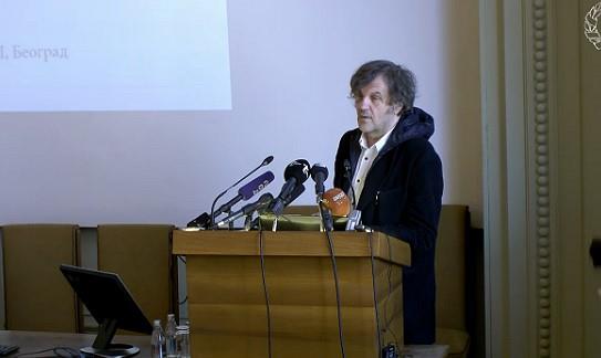 Proslavljeni srpski režiser Emir Kusturica održao je danas u Srpskoj akademiji nauka i umetnosti SANU u Beogradu predavanje „Bog je kultura“.