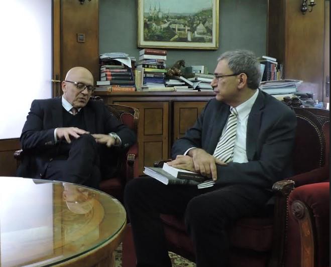 Ministar kulture i informisanja Vladan Vukosavljević i Pamuk sastali su se danas u Srpskoj akademiji nauka i umetnosti nakon predavanja. Na sastanku je bilo reči o inicijativi da se u Beogradu tokom naredne godine organizuje međunarodni skup uglednih pisaca iz celog sveta. Ministar upoznao je u najosnovnijim crtama turskog nobelovca sa idejom o organizovanju susreta književnika na kome bi se razgovaralo o tome kuda ide savremena književnost, ko su moderni junaci, položaju književnika u društvu i ostalim aktuelnim temama iz oblasti svetske književnosti.