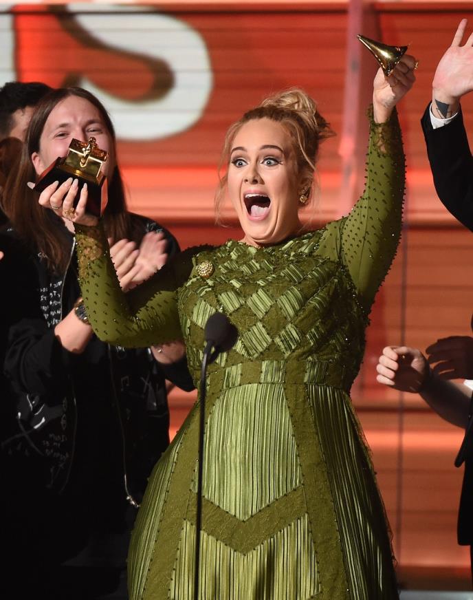 Britanska muzička zvezda ovojila je pet Gremija, među kojima su i glavne nagrade - za album ("25"), ploču i pesmu ("Hello") godine. Adel je prilikom obraćanja publici odala priznanje Bijonse, nazvavši je svojim idolom, a nagradu za album godine polomila kako bi je podelila sa njom.