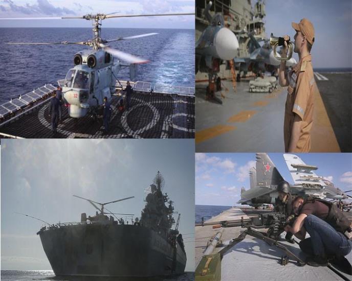 U filmu se nalaze ekskluzivni videomaterijali dobijeni od snimatelja kanala "T24" za vreme 47-dnevnog pohoda ruske flote na čelu sa admiralskim brodom VMF Rusije, teškim nosačem aviona "Admiral flote Sovjetskog Saveza Kuznjecov". Ekipa snimatelja je detaljno dokumentarno prikazala admiralski brod Severne flote VMF Rusije, tešku atomsku raketnu krstaricu "Petar Veliki",velike protivpodmorničke brodove "Severomorsk" i "Vice Admiral Kulakov".