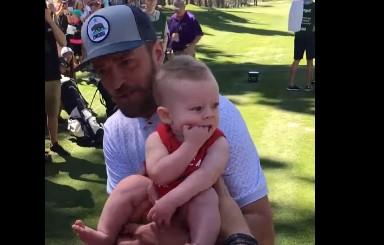 Džastin Timberlejk učestvovao je na jednom golf takmičenju u Sjedinjenim Američkim Državama, a svojim gestom zadivio je svet. Majkl Hud koji je bio u publici sa svojom bebom poželeo je da Džastin drži njegovog naslednika u rukama.
