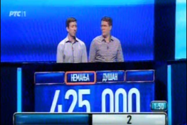 Kada je počela poslednja runda takmičenja, u kojoj su Dušan i Nemanja borili da zadrže 425.000 dinara, Nemanja je počeo da se javlja i viče "dalje"?! Čak i na odgovore koje znaju osnovci, poput kako se zove muslimanski bog!