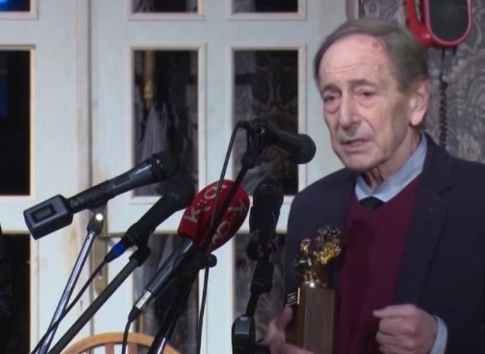 "Drago mi je i strećan sam što sam u društvu svih bardova glume Srbije koji su dobili ovu nagradu", rekao je Ejdus i poljubio "Zlatnog ćurana".