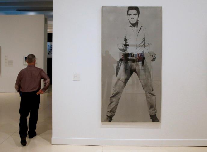 Na slici pod nazivom "Dvostruki Elvis" (Double Elvis), čuveni muzičar je prikazan s revolverom u ruci, u svom izdanju iz vesterna "Plamteća zvezda" (Flaming Star) iz 1960. godina, sa odrazom svog lika u pozadini, prenosi AP.