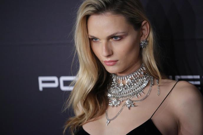 Andreja Pejić obukla je minijaturni crnu haljinu, koja joj je jedva pokrila grudi.